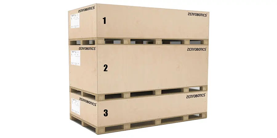 Thanks to the modular packaging designed by Huld’s experts, both the company’s own personnel and clients get a remarkably better user experience. Parts in the new boxes are divided according to assembly order and arranged in logical entities. This way, the package can be opened and the robot installed in an effective way. The previous timber surfaces of the boxes were replaced with plywood, which enables Zenrobotics brand elements to be painted on the packaging surfaces.